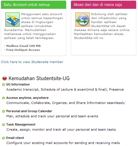 Dalam website ini juga dapat diliha kemudahan fasilitas studentsite yaitu sebagai berikut.